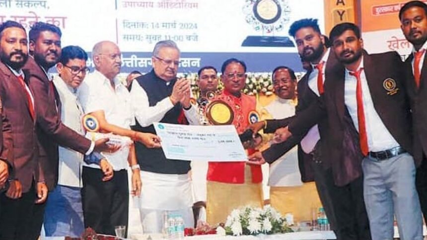 रायपुर। गुरूवार को पं. दीनदयाल उपाध्याय आडिटोरियम में आयोजित राज्य खेल अलंकरण समारोह में नेटबाल खिलाड़ी मोहन राव, इमरान खान, मनोज साहू, प्रकाश विश्वकर्मा, प्रशांत जैकत, निलेश शर्मा को राजीव पांडेय पुरस्कार से सम्मानित किया गया। यह सम्मान उन्हें संयुक्त रूप से वर्ष 2017 से 2021 तक राष्ट्रीय स्पर्धाओं में छत्तीसगढ़ का प्रतिनिधित्व करते हुए बेहतर प्रदर्शन करने के लिए दिया गया।