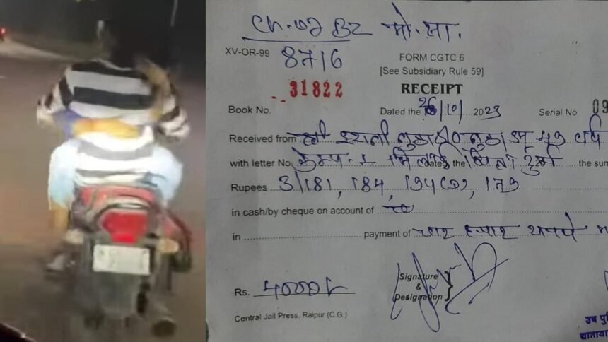 एसपी के निर्देश के बाद यातायात डीएसपी सतीष ठाकुर ने मोटर सायकल क्रमांक सीजी 07 बीजेड 8716 की डिटेल निकाली। इसके बाद वाहन मालिक को यातायात मुख्यालय नेहरू नगर बुलाया गया। वाहन मालिक को वीडियों दिखाने पर उन्होंने बताया कि बाइक चलाने वाला लडका मेकेनिक का काम करता है। दो दिन पहले उन्होंने अपना वाहन बनाने दिया था। इसके बाद यातायात पुलिस ने युवक व उसके परिजन को यातायात मुख्यालय बुलाया। मौके पर मोटर व्हीकल एक्ट के तहत कार्रवाई करते हुए 4000 रुपए का चालान किया गया। यही नहीं यातायात पुलिस ने युवक के परिजनों को भी समझाइश दी।