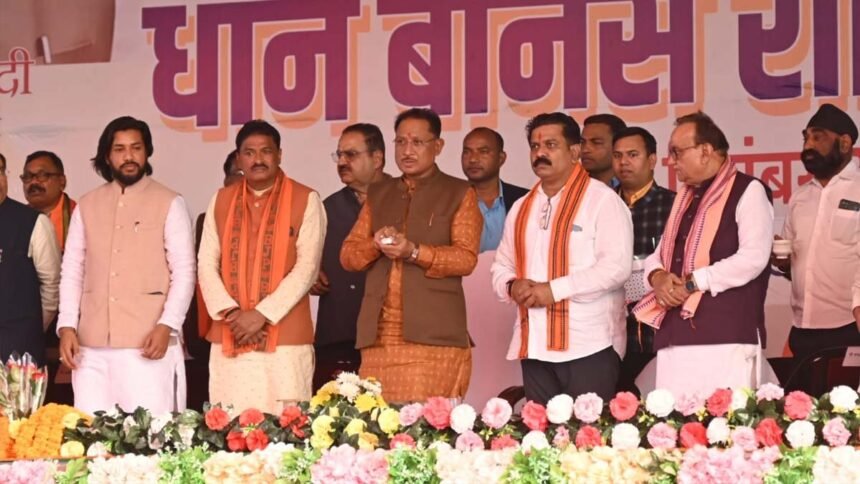 रायपुर। भारतरत्न अटलबिहारी वाजपेयी की जयंती के अवसर पर छत्तीसगढ़ के 12 लाख किसानों के चेहरे खिल उठे। इस दिन को पूरे राज्य में सुशासन दिवस के रूप में मनाया जा रहा है। किसानों को 2 साल के बकाया बोनस के रूप में 3,716 करोड़ 38 लाख 96 हजार रूपयों का भुगतान किया गया। छत्तीसगढ़ सरकार ने मोदी की गारंटी का दूसरा वादा सुशासन दिवस के मौके पर पूरा कर दिया है। मुख्यमंत्री विष्णु देव साय ने आज अभनपुर के ग्राम बेन्द्री में आयोजित राज्य स्तरीय कार्यक्रम में प्रदेश के 12 लाख से अधिक किसानों को दो साल के धान के बकाया बोनस के रूप में 3716 करोड़ रूपए की राशि उनके बैंक खाते में हस्तांतरित की। उन्होंने कार्यक्रम में कहा कि किसानों से प्रति एकड़ 21 क्विंटल के मान से धान खरीदेंगे। जरूरत पड़ने पर समर्थन मूल्य में धान खरीदी की अवधि भी बढ़ाई जाएगी।