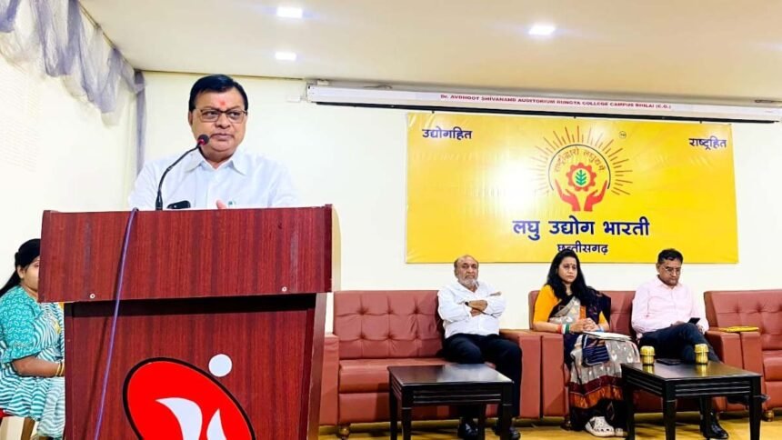 भिलाई। छत्तीसगढ़ लघु उद्योग भारती ने रुंगटा कॉलेज ऑफ इंजीनियरिंग एण्ड टेक्नोलॉजी भिलाई में महिला उद्यामिता प्रोत्साहन का कार्यक्रम आयोजित किया। जिसमें मुख्य अतिथि के रूप में लघु उद्योग भारती के अखिल भारतीय संगठन मंत्री प्रकाश चंद्र व विशिष्ठ अतिथि के रूप में छत्तीसगढ़ के उद्योग मंत्री लखनलाल देवांगन उपस्थित रहे। ओम प्रकाश सिंघानिया जी की अध्यक्षता में हुऐ इस कार्यक्रम में, लगभग 300 बहनों की भागीदारी रही, उन्होंने अपने स्वागत भाषण में लघु उद्योग भारती की भविष्य की योजनाओं के विषय में जानकारी दी।