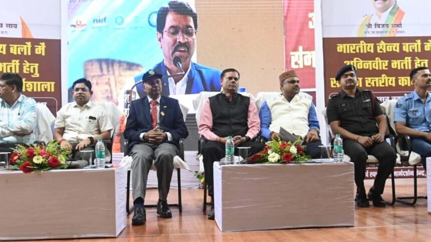 दुर्ग। भारतीय थलसेना और वायुसेना में अग्निवीर भर्ती के लिए संभाग स्तरीय एक दिवसीय कार्यशाला का आयोजन बीआईटी कॉलेज के सभागार में किया गया। कार्यक्रम में मुख्य अतिथि विधायक गजेन्द्र यादव एवं ललित चंद्राकर, कमिश्नर सत्यनारायण राठौर, मेजर माथुर, सेवानिवृत्त अधिकारी अरूण जुल्के, सारजेंट डी.एस.मराठे एवं मुख्य कार्यपालन अधिकारी जिला पंचायत अश्वनी देवांगन उपस्थित थे। भारतीय थल सेना और वायु सेना में भर्ती के लिए निर्धारित योग्यता पर चर्चा हुई।